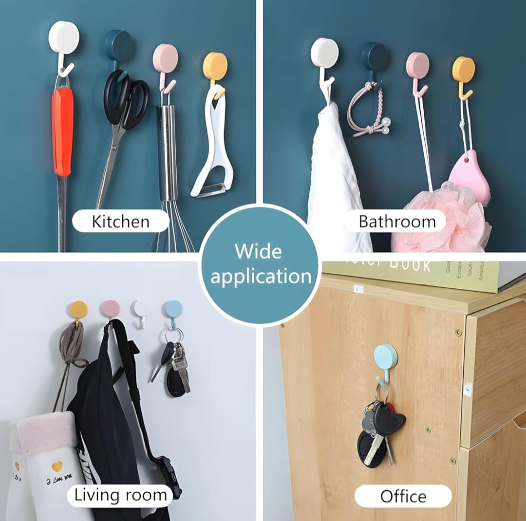 Round Wall Hooks for Hanging – Multicolor Self Adhesive Hooks for Keys, Kitchen, Bathroom, Decorative Use – Cute Plastic Hooks for Kids & Home Organization (Pack of 10)
